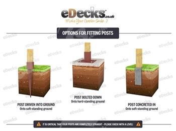 Concrete In – Longer posts are supplied allowing 600mm to be bedded into the ground and fixed with concrete/postmix. (Concrete/postmix not included).